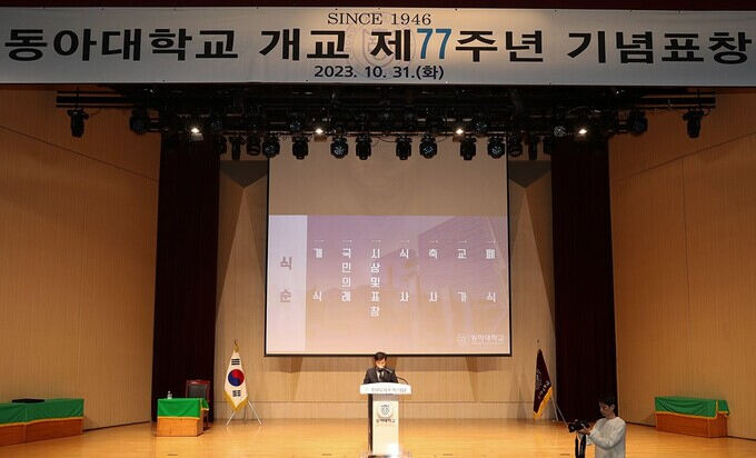 동아대는 31일 부산 서구 부민캠퍼스 다우홀에서 교직원과 동문, 학교법인 관계자 등이 참석한 가운데 77주년 개교기념식을 가졌다고 밝혔다.
