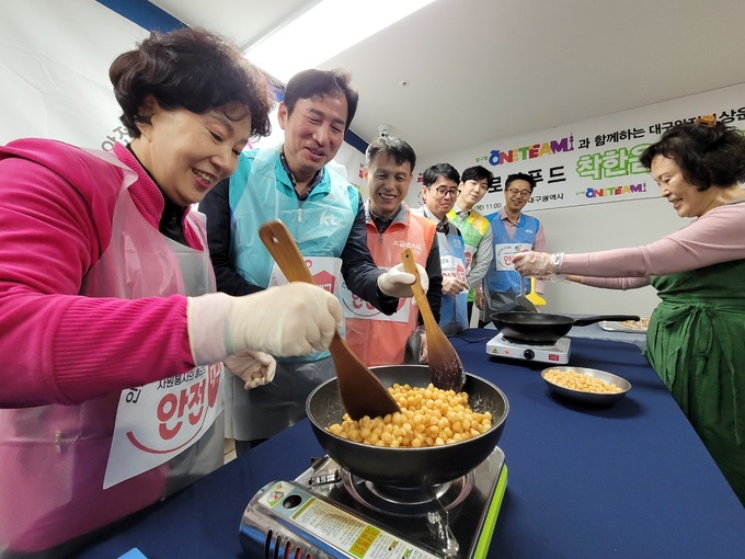 KT 대구경북광역본부는 달구벌원팀 소속 기관 임직원 50여명이 참석한 가운데 동구 안심제1종합사회복지관에서 ‘착한음식키트’ 제작·나눔 활동을 펼쳤다고 2일 밝혔다.