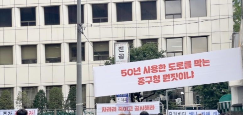 또 다른 상인은 ‘차라리 죽이고 공사해라’라는 현수막을 내붙일 정도로 도로 폐쇄에 강하게 반대하고 있다. B점포 사장은 “코로나도 간신히 버텼는데 중구청의 막무가내식 행정으로 손님이 다 끊기게 생겼다”면서 “생존권을 보장하지 않으면 공사 트럭 한 대도 들어오지 못하게 막을 것”이라고 말했다.