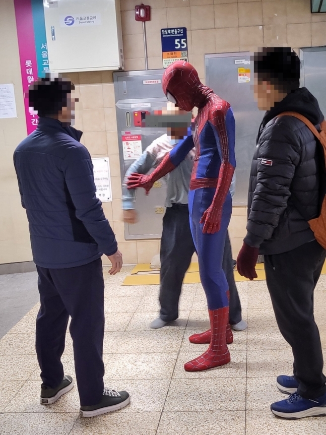 잠실역에 나타난 스파이더맨?… 영어 쓸 줄 알았더니 “아유, 그럼요”