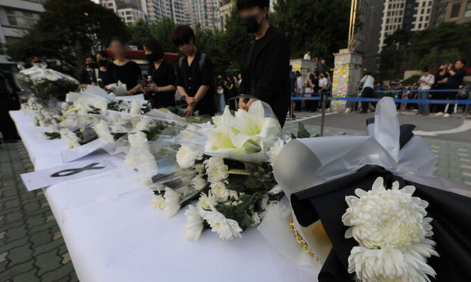 서울 서초구 서이초등학교를 찾은 추모객들이 조문하고 있다. 뉴시스