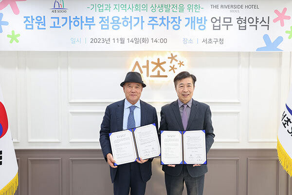 14일 서초구청에서 열린 서초구(구청장 전성수)와 더 리버사이드 호텔(㈜가우플랜)의 업무협약식에서 이 같은 내용의 협약이 체결됐다. 협약식엔 전성수 서초구청장과 가우플랜 안병균 회장 등이 참석했다.