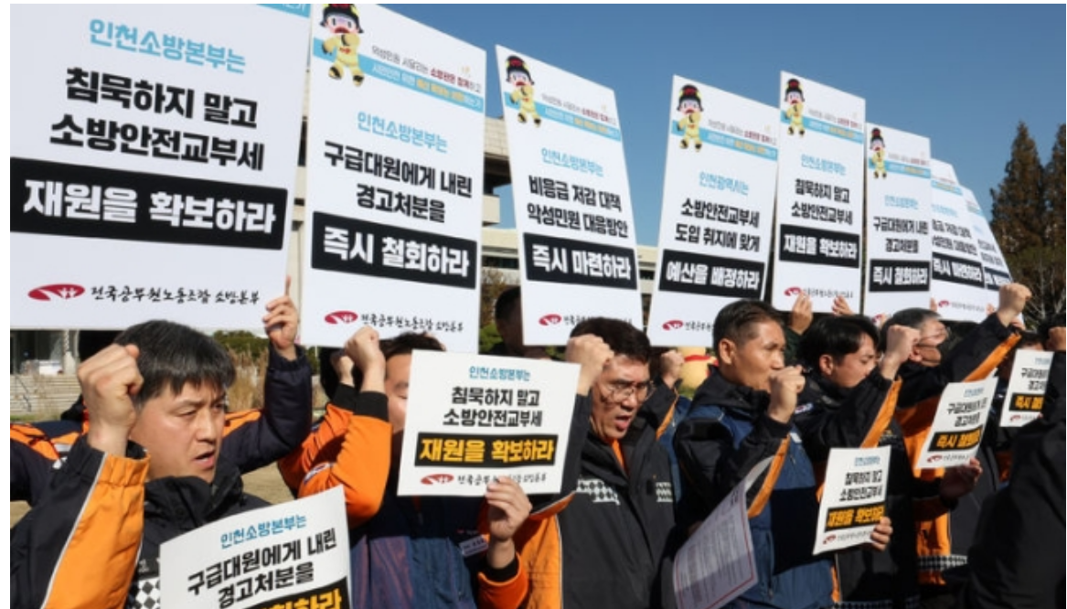 노조는 또 “사회의 기초인 소방안전이 시도의 재정 형편에 따라 달라지거나 그로 인해 시민의 안전이 위협받는 일은 없어야 한다”며 “인천시는 인천시민과 소방관의 안전을 위해 소방안전교부세를 소방분야에 전폭 배정해야 한다”고 강조했다.