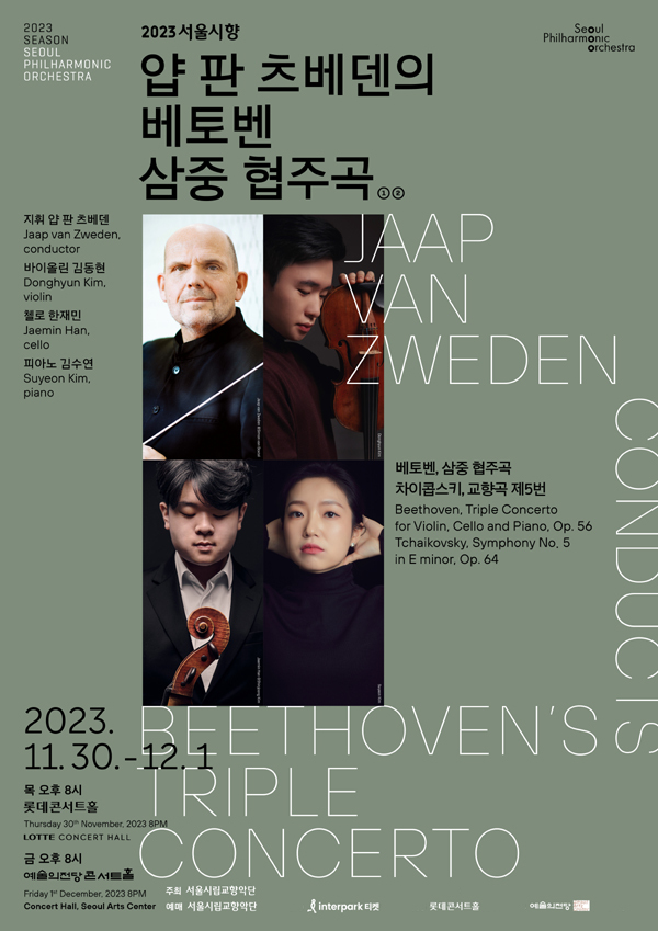 서울시향은 30일과 12월1일 ‘얍 판 츠베덴의 베토벤 삼중 협주곡’을 무대에 올린다고 28일 밝혔다. 세계적 콩쿠르에서 이름을 알린 첼리스트 한재민, 피아니스트 김수연, 바이올리니스트 김동현이 협연한다.