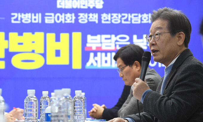 민주당 이재명 대표는 28일 서울 구로구의 한 요양병원에서 연 정책간담회에서 간병파산, 간병살인 등 사회 문제를 낳고 있는 간병의 어려움을 소개하며 “간병비 전부를 급여화하는 건 당장은 비용 부담이 크다고 해 순차적으로 요양병원부터 범위를 넓혀나가는 것으로 추진하려 한다”고 했다. 이개호 정책위의장은 “당장 내년 예산에 80억원의 10개소 시범 사업비를 확보해 차근차근 준비해 나가겠다”고 했다.