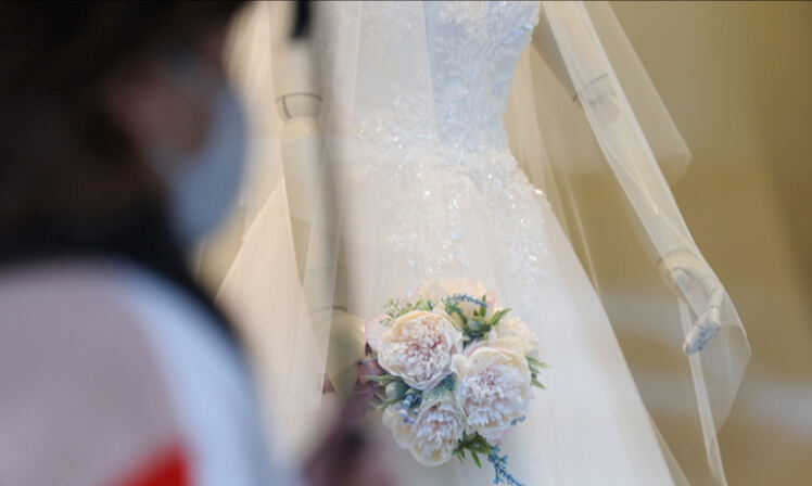 서울 마포구 아현동 웨딩거리 한 웨딩드레스 판매점 앞을 시민들이 지나가고 있다. 연합뉴스