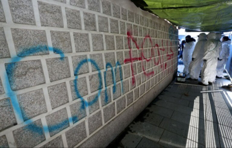 이번 낙서는 지난 16일 같은 장소에서 발생한 낙서에 이은 두 번째다.