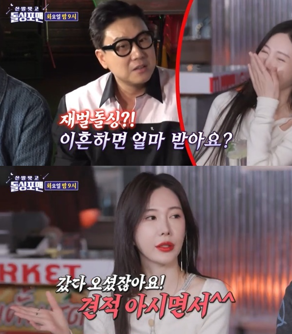이어 이상민은 김광규에게 “유부남들의 환상, 나 혼자 젊게 살고 계신다”라고 말했지만 김광규는 “네 분의 형님들이 부럽다. 효도를 한 번 하고 오셨잖아요”라며 돌싱포맨 출연진들의 이혼 경험을 효도로 한 번 하고 온 것으로 포장해 폭소를 유발했다.