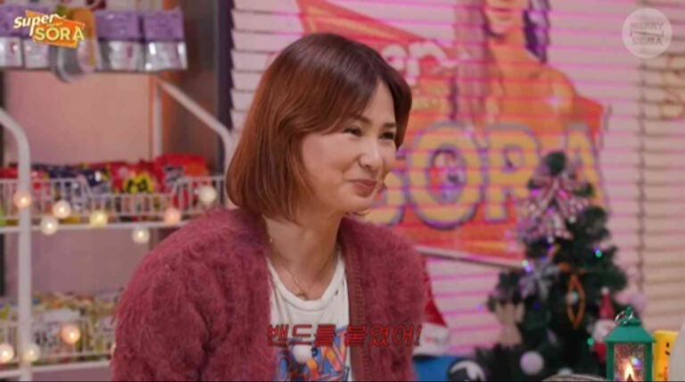 이소라는 방송에서 반짝이는 은색 바지를 입고 있었다.