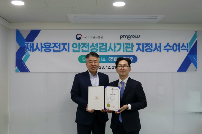 산업통상자원부 국가기술표준원(이하 국표원)은 전날 피엠그로우를 ‘민간기업 제1호 재사용전지 안전성검사기관’으로 지정했다.