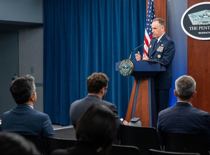 미국 국방부 패트릭 라이더 대변인(공군 소장)이 지난 21일(현지시간) 출입기자들을 상대로 브리핑을 하고 있다. 미 국방부 홈페이지