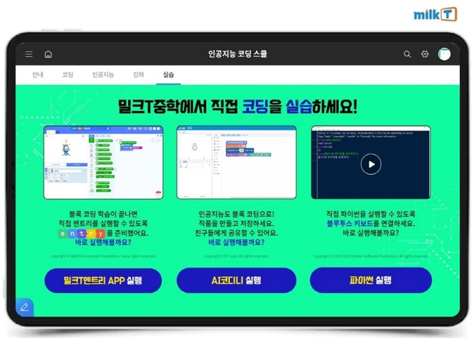 뿐만 아니라 밀크티중학은 ‘인공지능 코딩 스쿨’에서 파이썬, 챗GPT 등 다양한 인공지능 활용 강좌와 코딩 실습 콘텐츠를 제공하고 있다.