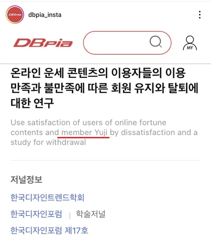 2일 각종 온라인 커뮤니티 등에 따르면 디비피아는 전날 SNS에 ‘온라인 운세 콘텐츠의 이용자들의 이용 만족과 불만족에 따른 회원 유지와 탈퇴에 대한 연구’ 제목 논문을 ‘오늘의 추천 논문’으로 소개했다. 해시태그로 ‘운세’ ‘새해’ ‘논문’ ‘디비피아’ ‘dbpia’ 등을 포함해 논문을 추천했던 디비피아는 해당 글을 삭제한 후 별도의 글은 올리지 않고 있다.