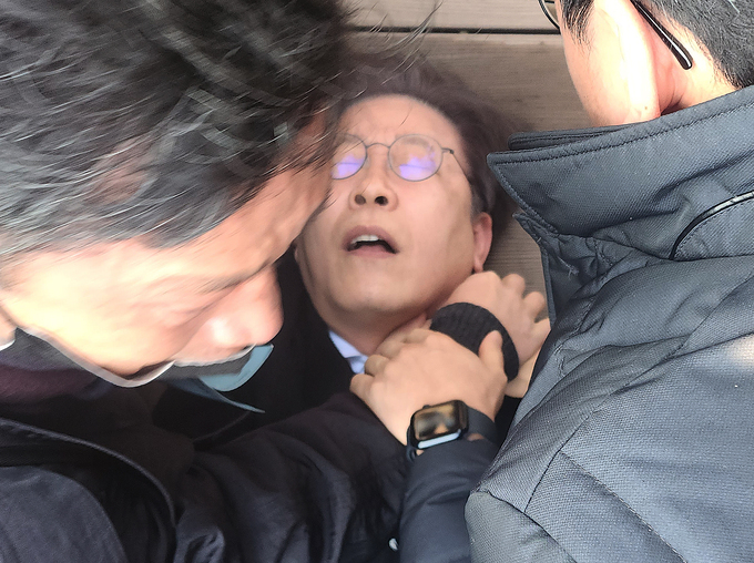 이 대표는 이날 오전 10시 27분쯤 부산 가덕도 신공항 부지를 둘러본 후 기자들과 문답을 진행하던 중 신원이 확인되지 않은 남성으로부터 왼쪽 목 부위를 공격당해 피를 흘린 채 쓰러졌다.
