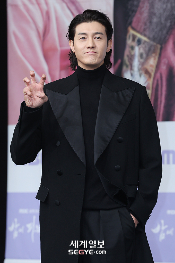 배우 이기우가 12일 오후 서울 마포구 상암동 MBC 사옥에서 진행된 새 금토드라마 '밤에 피는 꽃'의 제작발표회에 참석해 포즈를 취하고 있다.