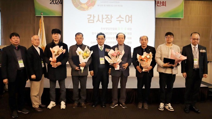 한국농수산식품유통공사(사장 김춘진)는 30일 (사)대한민국GAP연합회(회장 정덕화) 2024년 총회에 참석해 우수농산물관리제도를 기반으로 안전한 농산물을 생산‧공급하며 저탄소 식생활 실천 운동에 적극 기여한 추부깻잎 연합회 등 5개 단체에 감사장을 수여했다.