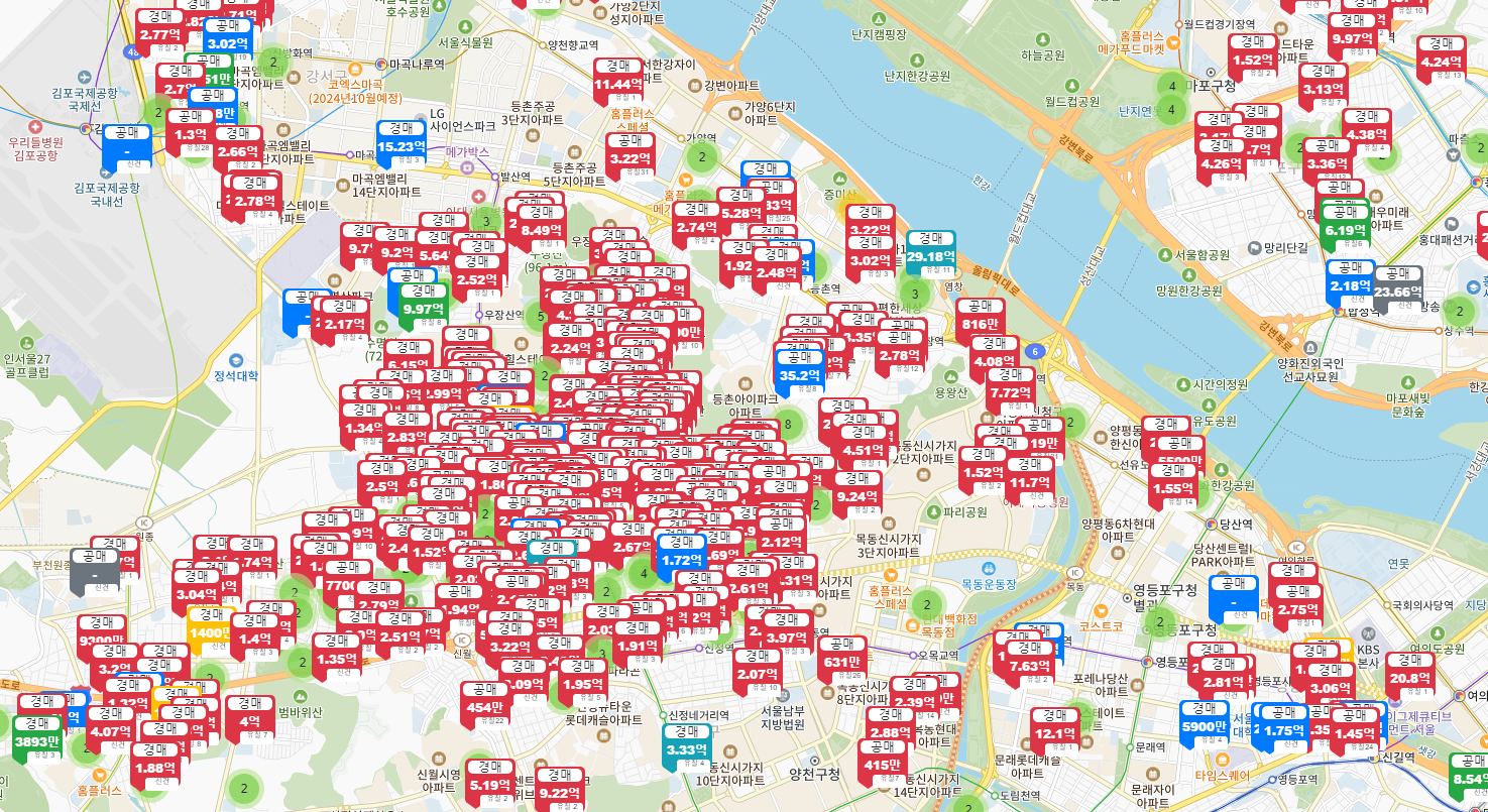 1일 경매지도를 살펴보면 강서구 화곡동에만 유독 많은 경매 빨간 딱지가 나붙었는데 대부분의 물건들은 1억~4억 사이 다세대 주택이었다.