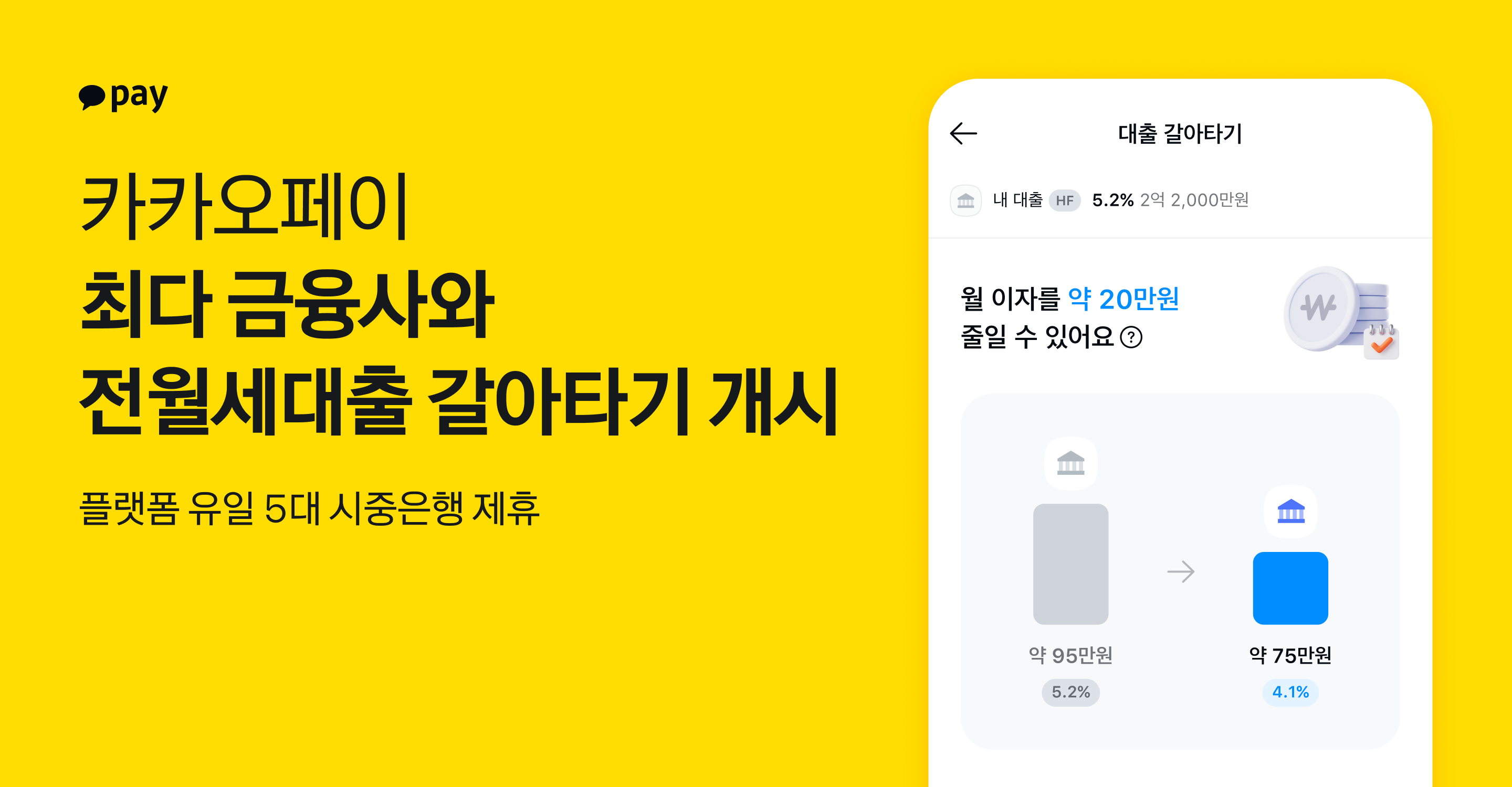 카카오페이, 최다 금융사와 '전월세대출 갈아타기' 시작… 플랫폼 유일 5대 시중은행 입점