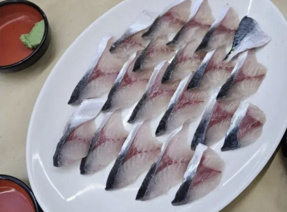 공개된 사진에는 편으로 썰린 고등어회 20점 가량이 접시에 담겨있다.