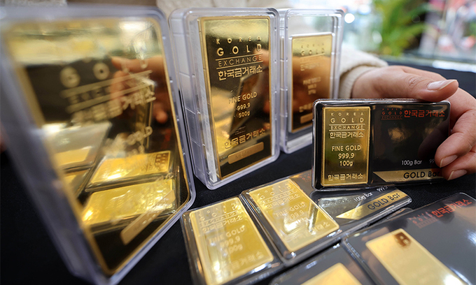 국제 금가격 하락에 따라 국내 금값도 약세다. 한국거래소(KRX)에 따르면 금 시장에서 전일 1㎏짜리 금 현물의 1g당 가격은 0.91% 상승한 8만6820원에 장을 마감했다. 금 가격은 지난 달 16일 8만7740원으로 종가 기준 역대 최고치를 경신했으나 이달 하락세를 보이고 있다. 이달 1일(37만3000원) 보다 1.07% 내렸다. 한국금거래소에서도 KRX 금현물이 금 1돈(3.75g) 가격은 지난 15일 36만5000원까지 빠졌다. 고점(1월17일·37만4000원) 대비 2.4% 떨어졌다.