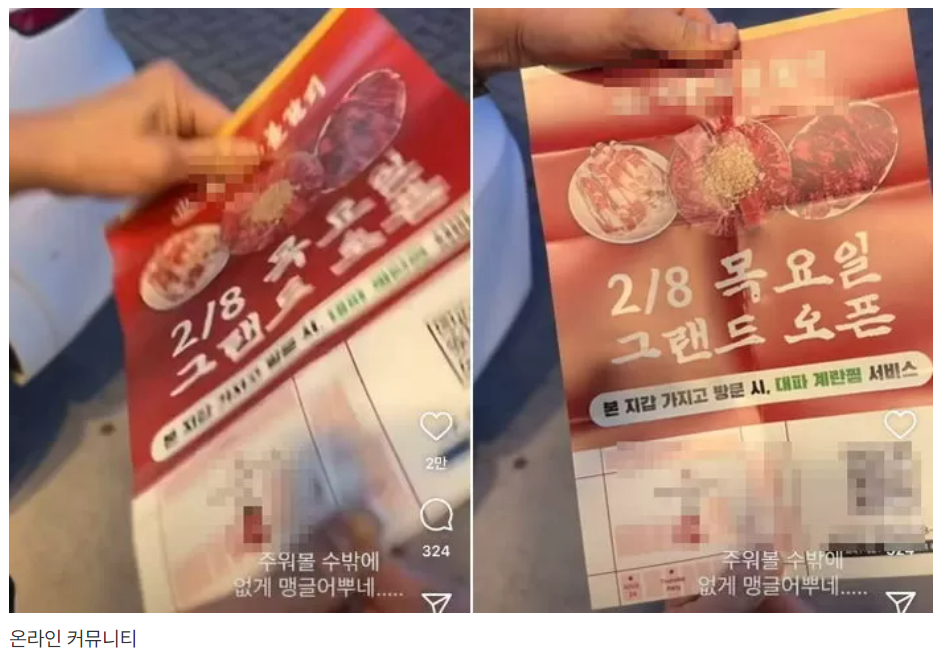 하지만 마저 다 열어보면 한 갈빗집의 개업 소식이 담긴 전단지다.