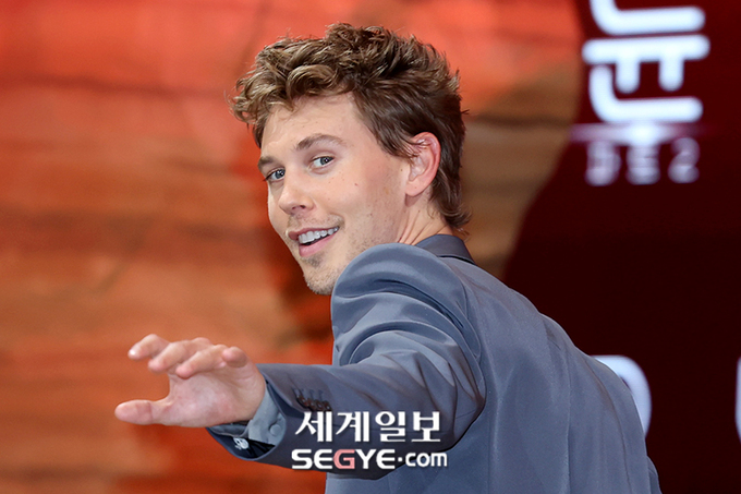할리우드 배우 오스틴 버틀러가 21일 오후 콘래드 서울 호텔에서 열린 영화 '듄:파트2'의 내한 기자회견에 참석해 포즈를 취하고 있다.