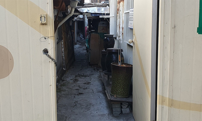 지난 13일 서울 양재천 카페거리에서 직선으로 800여m 떨어진 논현로12길 28에 이르니 겨울철 안전을 강조하는 강남구청 주택과의 현수막이 눈에 띄었다. 1988년 서울올림픽 전후 체비지(토지구획 정리사업으로 정부나 지방자치단체에 환수되는 잉여 토지)에 형성된 무허가 판자촌 ‘수정마을’(총면적 2839㎡)이다. 설 연휴 추위를 벗어나 오랜만에 포근한 날씨였지만 이곳은 주변 상가 건물과 빌라 그늘로 뒤덮여 을씨년스러웠고, 그 존재도 쉽게 알아차릴 수 없을 듯했다.