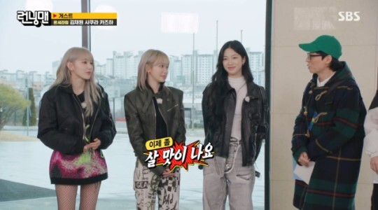 지난 25일 SBS 예능 '런닝맨'에 그룹 르세라핌 멤버 김채원, 사쿠라, 카즈하와 김동현, 홍진호가 게스트로 출연해 시대를 넘나드는 투자 레이스 특집을 꾸몄다.