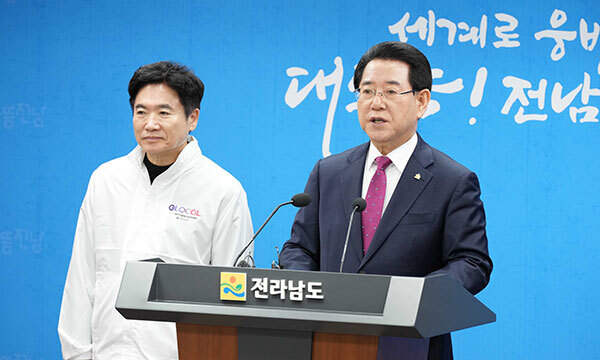 김영록 전남도지사와 김대중 전남도교육감은 28일 오후 도청 브리핑룸에서 교육부의 교육발전특구 시범지역에 전남 7개 시군이 지정된 것에 환영 입장을 밝히고 지역 균형발전을 선도할 전남형 모델 추진을 다짐했다.