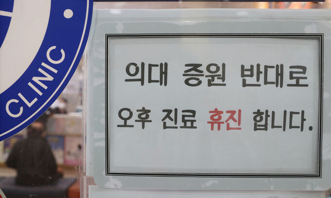 지난 2월 28일 경기 수원시의 한 의원에 오후 휴진을 알리는 안내문이 붙어있다. 뉴스1