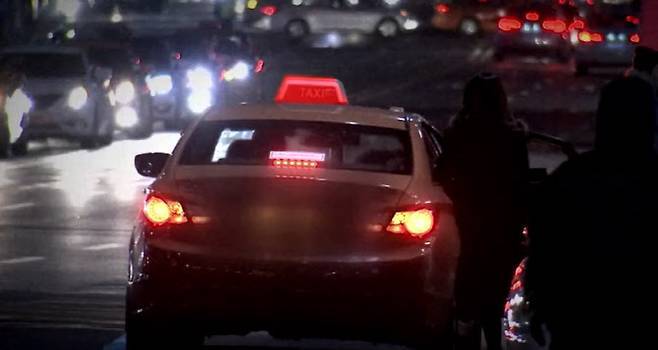택시 ‘빨간 갓등’이 켜진 것을 발견한 경찰이 손님에게 흉기로 협박받고 있던 택시기사를 구했다.
