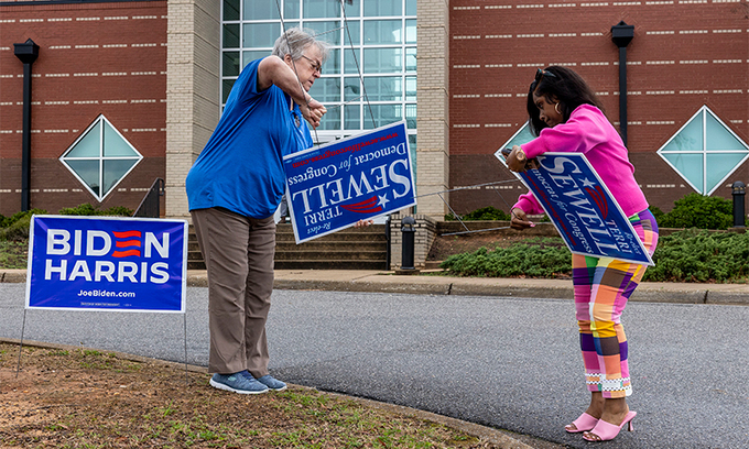 응원 팻말 꽂는 바이든 지지자들 입력 : 2024-03-06 19:03:06 수정 : 2024-03-06 19:03:05 구글 네이버 유튜브 5일(현지시간) 미국 대선 민주당 프라이머리가 치러진 앨라배마주 터스컬루사에서 민주당 관계자들이 조 바이든 대통령과 카멀라 해리스 부통령 등을 응원하는 팻말을 땅에 꽂고 있다. <연합>연합> Copyright ⓒ 세계일보. 무단 전재 및 재배포 금지 연합