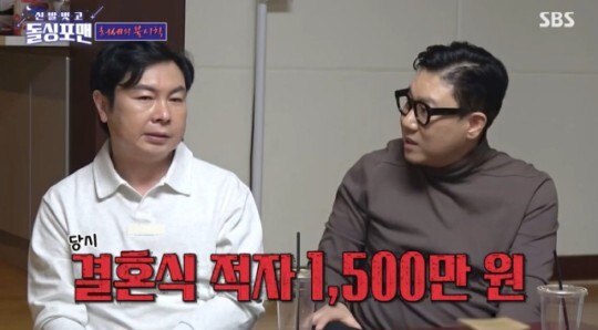 그러면서 "임원희 씨 경험 있으시죠? (과거) 결혼식에서 적자가 한 1500만원 정도 나왔다는 이야기가 있다"고 물었다. 이에 임원희는 "호텔 결혼식은 식사로 스테이크를 먹지 않나. 단계가 있는데 보통 (가격이 낮은) 밑의 단계를 선택한다. 그런데 난 (높은 가격의) 윗단계를 선택했다. 허세 부린 것"이라고 털어놨다.