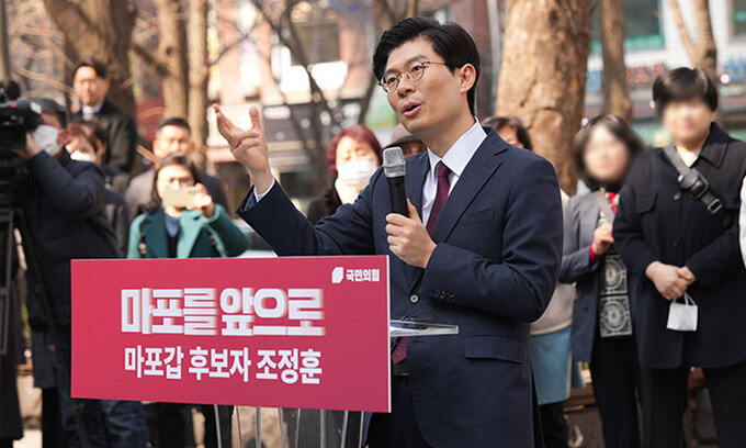 서울 마포갑에 출마한 국민의힘 조정훈 의원이 ‘마포를 앞으로’라는 정치 슬로건을 내세우며 14일 출마 선언을 했다. 조 의원은 “마포를 용산과 여의도를 잇는 정치 1번지로 변화시키겠다”며 교육 공약과 경의선 숲길을 한강까지 연장하는 도시 개발 계획을 발표했다.