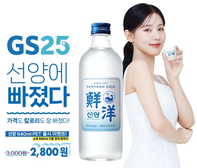 국내 최저 도수(14.9도), 최저 칼로리(298㎉) 제로슈거 소주 ‘선양(鮮洋)’이 물가 안정 프로젝트의 일환으로 GS리테일과 손잡고 640㎖ PET 제품을 선보였다.