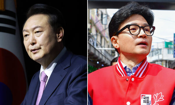 윤석열 대통령(왼쪽), 국민의힘 한동훈 비상대책위원장. 뉴시스