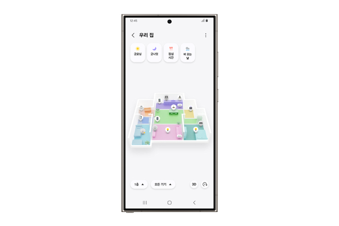 맵뷰는 더 직관적으로 집 구조와 공간별 상황을 인지할 수 있는 3차원 보기 기능도 추가했다. 3D 도면을 보면서 공간별로 스마트싱스 연결 기기의 상태를 확인하고 조명, 온도, 공기질, 에너지 사용량 등을 손쉽게 관리할 수 있게 해준다.