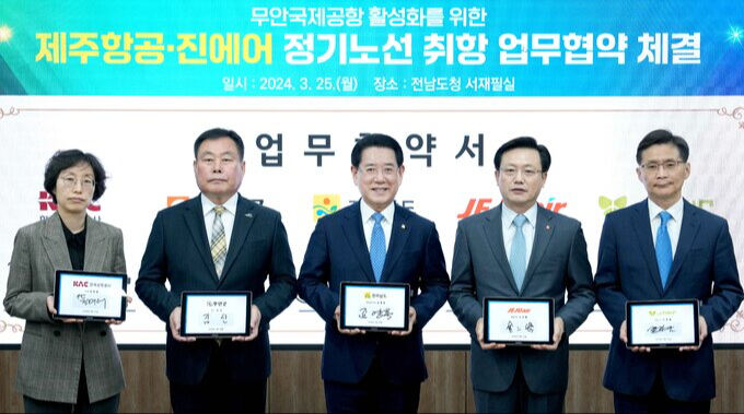 김영록 지사는 “우리나라 저가 항공을 대표하는 제주항공과 진에어의 무안국제공항 정기노선 운항을 환영한다”며 “두 항공사의 발전이 곧 전남의 발전이라는 마음으로 앞으로 더 큰 협력을 이어가길 바란다”고 말했다.