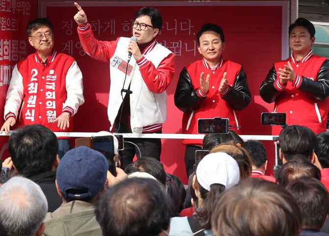 한 위원장은 이날 경기·인천 지원 유세에서 편법 대출 논란이 제기된 민주당 양문석 후보(안산갑), 박정희 전 대통령과 군 위안부 비하 발언 논란이 불거진 같은 당 김준혁 후보(수원정)에 대해 파상 공세를 퍼부었다.