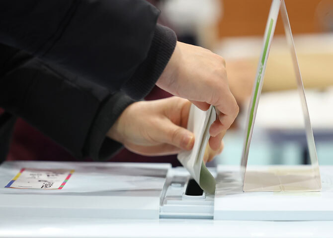 5일 전북특별자치도 전주시 완산구 효자3동 주민센터에 마련된 사전투표소에서 시민들이 투표하고 있다. 연합뉴스