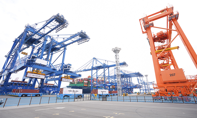국내 항만장비기업인 HD현대삼호, HJ중공업, 두산에너빌리티가 생산한 컨테이너크레인(안벽크레인)과 현대로템이 네덜란드 VDL사와 기술 협력을 통해 생산한 무인이송장비 등 국내 최초 국산 항만 장비로 운영한다. 무인 원격 컨테이너크레인과 무인이송장비가 도입돼 안벽부터 장치장(야드)까지 항만 내 화물이송 전 과정이 자동화 체계다.