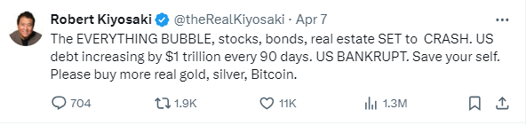 로버트 기요사키는 투자자들이 시장 붕괴에서 살아남기 위해서는 금, 은, 비트코인을 보유해야 한다고 주장한다.