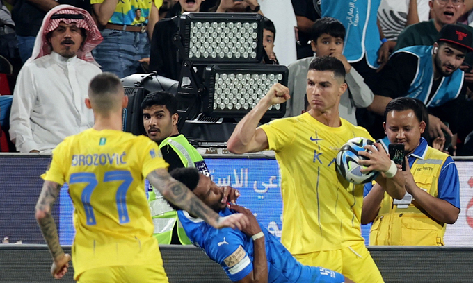 후반 16분과 27분 연속 실점을 헌납하며 0-2로 끌려간 알나스르는 후반 41분 호날두가 퇴장당하며 추격의 힘을 잃었다. 호날두는 알힐랄의 알리 알불라이히와 터치 라인을 벗어난 공을 잡으려다 몸싸움을 벌였다. 이 과정에서 오른 팔꿈치로 상대를 가격해 레드카드를 받았다.