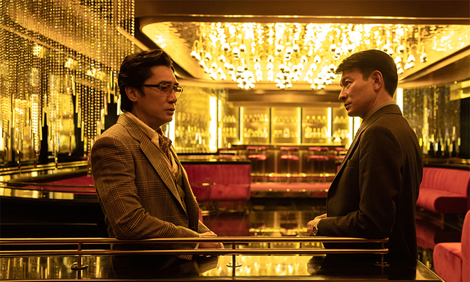 막이 오르면 익숙한 광둥어 발음에 반가움부터 든다. 홍콩 영화 전성기의 상징인 량차오웨이(양조위·62)와 류더화(유덕화·63)가 10일 개봉하는 영화 ‘골드핑거’(사진)에서 호흡을 맞춘다. 두 사람이 함께하는 건 ‘무간도 3-종극무간’(2004) 이후 20년 만이다. 연출 역시 ‘무간도’ 시리즈의 각본을 쓴 좡원창 감독이 했다. ‘무간도’에서 각각 형사와 폭력조직원을 연기한 두 배우는 이 작품에서 서로 역할을 바꿔 수사관과 금융범죄 피의자로 마주한다.