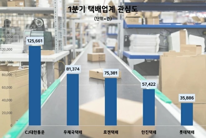 CJ대한통운이 올해 1분기 국내 주요 택배사 중 가장 많은 관심을 받은 것으로 나타났다.