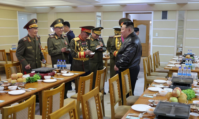 신문은 김 위원장이 재학생들의 침실과 식당까지 돌아보며 “학생들의 생활을 육친의 정으로 따뜻이 보살펴주시였(었)다”며 “식당에 들리시여 학생들에 대한 후방공급실태도 구체적으로 료해(파악)하시고 몸소 마련해오신 갖가지 음식들로 교직원, 학생들의 저녁식사를 차려주시였다”고 보도했다. 함께 실린 사진에는 식탁마다 고기와 쌈채소 과일, 불판이 가득 차려져 있는 모습이었다.
