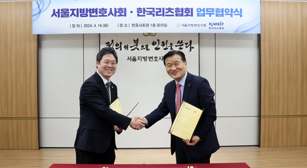 김정욱 서울지방변호사회장은 협약식에서 “거대한 자산이 운용되는 리츠 시장에 제도 개선 등을 위한 법률 전문가 수요와 법률 서비스의 사회적 요청이 많았는데 한국리츠협회와 상호 협력할 수 있게 돼 기쁘다”고 말했다. 정병윤 한국리츠협회장은 “서울지방변호사회와의 협력이 국내 리츠 분야의 인재 발굴·육성, 제도 개선 등을 위해 보다 전문적인 법률 서비스를 제공할 수 있는 토대가 되길 기대한다”고 강조했다.