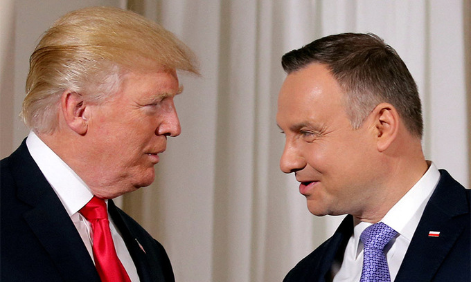 우파 성향의 두다 대통령은 트럼프 행정부 당시 트럼프 전 대통령의 이름을 따 군사기지의 이름을 짓겠다고 할 정도로 트럼프 전 대통령과 가까웠다.