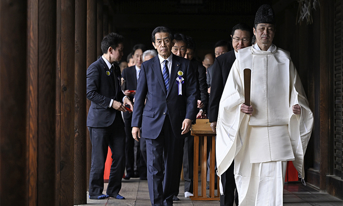 초당파 의원 모임인 '다함께 야스쿠니신사를 참배하는 국회의원 모임' 소속 의원들은 이 신사의 춘계 예대제(例大祭·제사)를 맞아 이날 오전 참배했다.