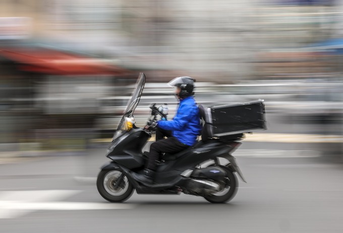 서울시내 한 주택가에 음식배달 종사자들이 배달을 위해 오토바이를 타고 이동하고 있다. 뉴시스